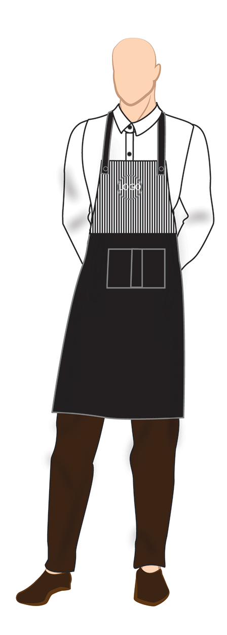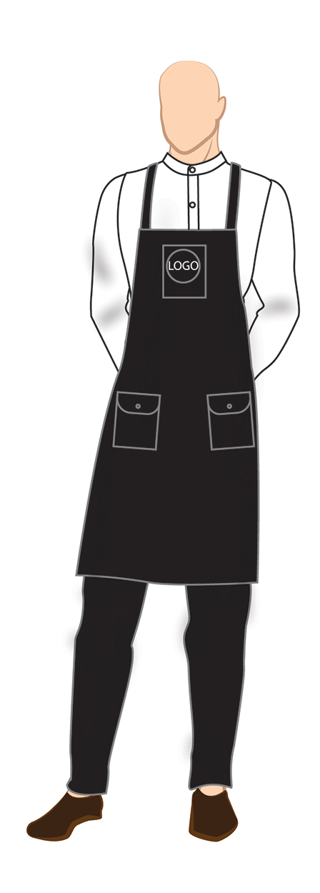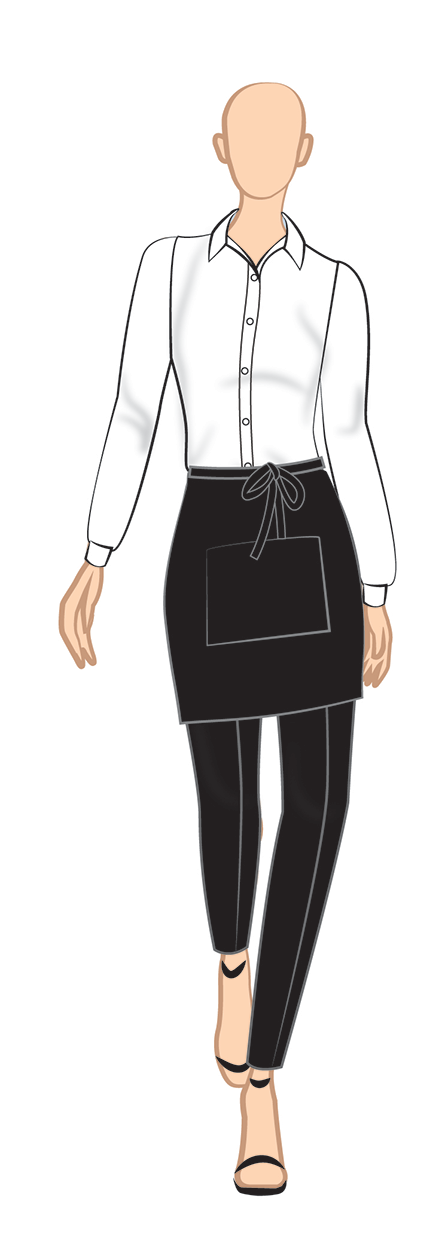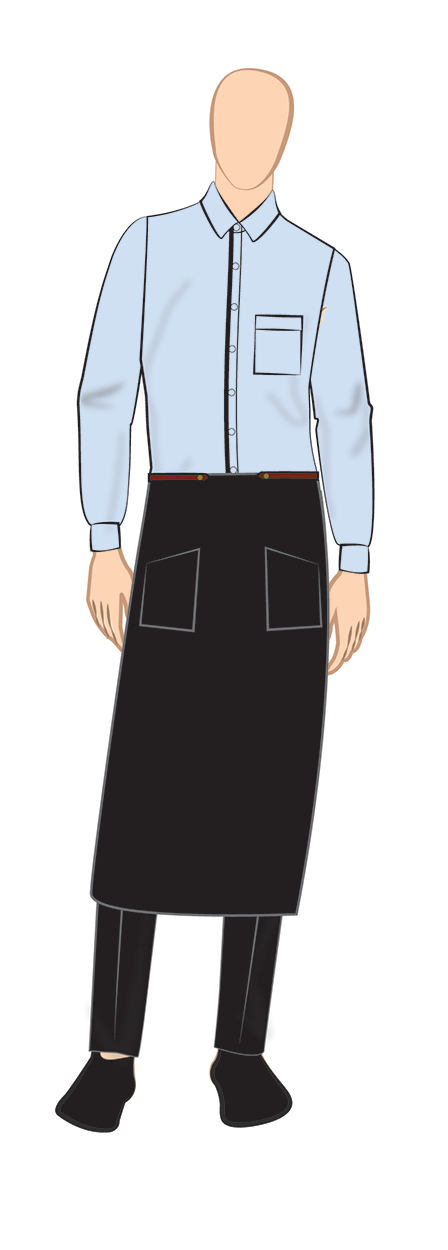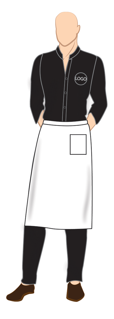 Full sleeve black formal shirt with trousers and full apron with single center pocket